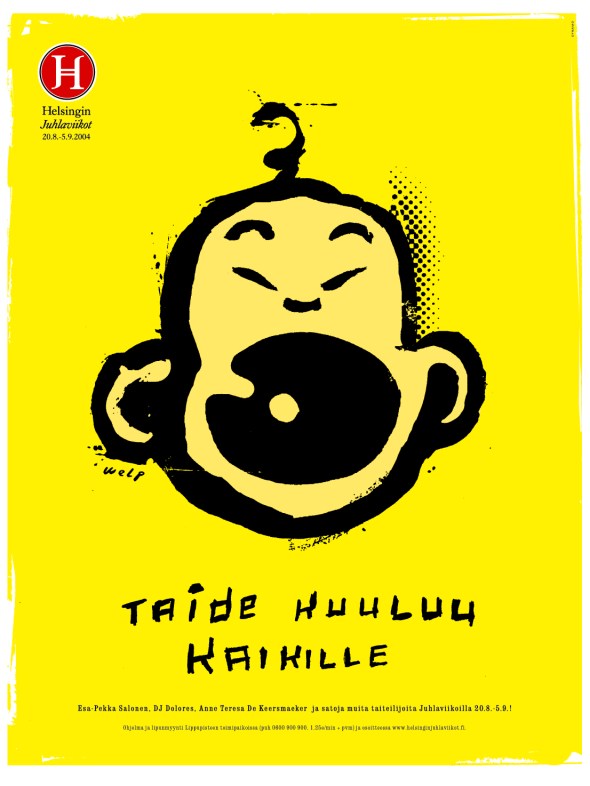 Tyylinäyte vuodelta 2004. Kuvat suunniteltiin yhdessä lahjakkaan kuvittajan, Klaus Welpin kanssa.