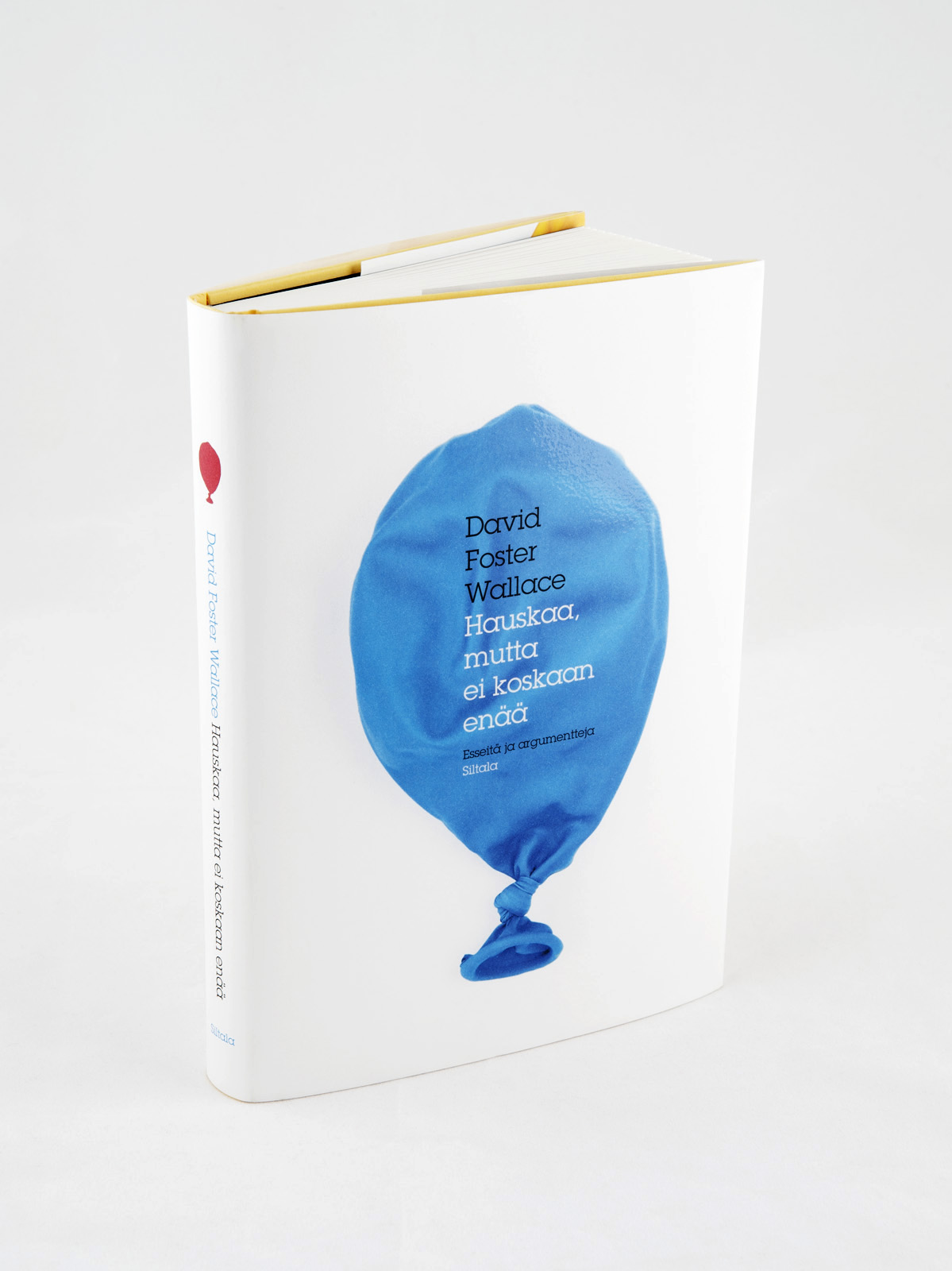 Suunnittelin Touko Siltalan pyynnöstä kulttikirjailija David Foster Wallacen kirjaan typografian, sidosasun ja kannet. Valokuvan otti Emmi Kaarna -tyhjä ilmapallo viestii hauskuuden loppumisesta.