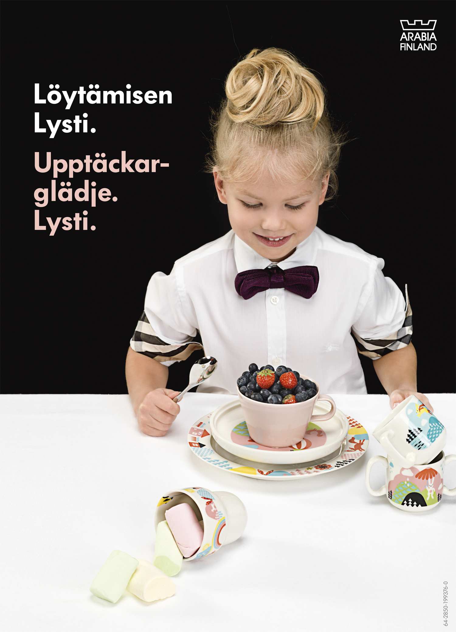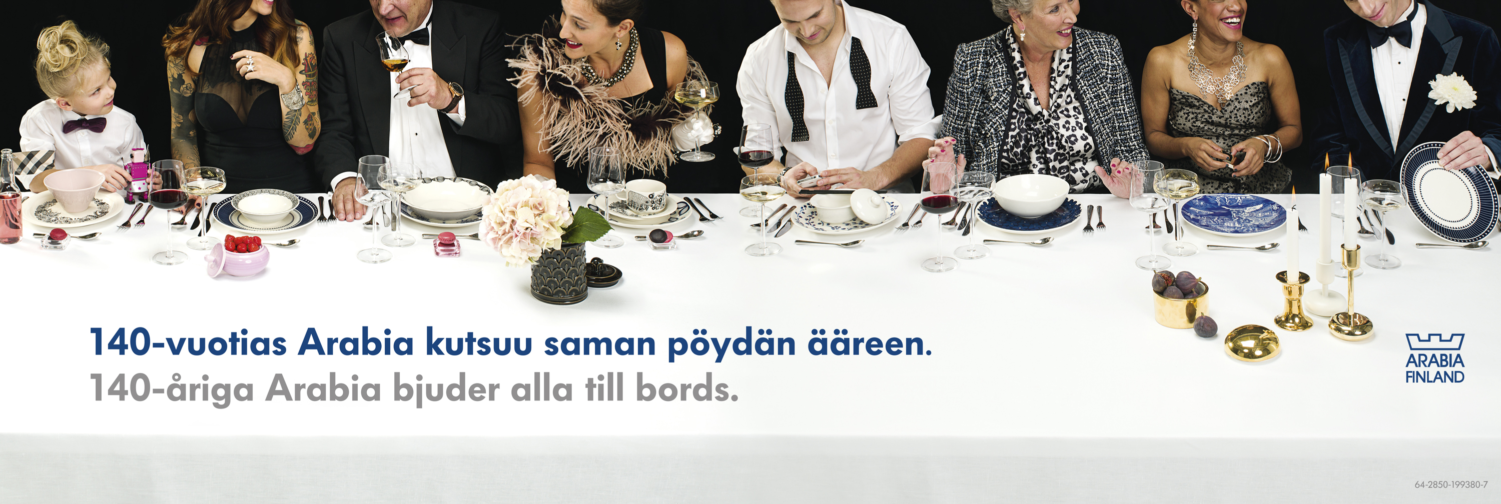 Arabian keramiikanhan tuntee kaikki suomalaiset. Funktionaaliset ja kauniit tuotteet ovat olleet läsnä kodeissamme jo 140 vuotta. Minulla oli ilo päästä suunnittelemaan ja toteuttamaan juhlavuoden ilme yhdessä lahjakkaan valokuvaajan Kaapo Kamun kanssa. Mukana oli toki iso joukko muitakin lahjakkaita tekijöitä ja asiakkaan puolelta porukkaa kannusti Susanna Varsanpää. Mukava työ ja tekijät näkyy näin onnistuneena lopputuloksena.