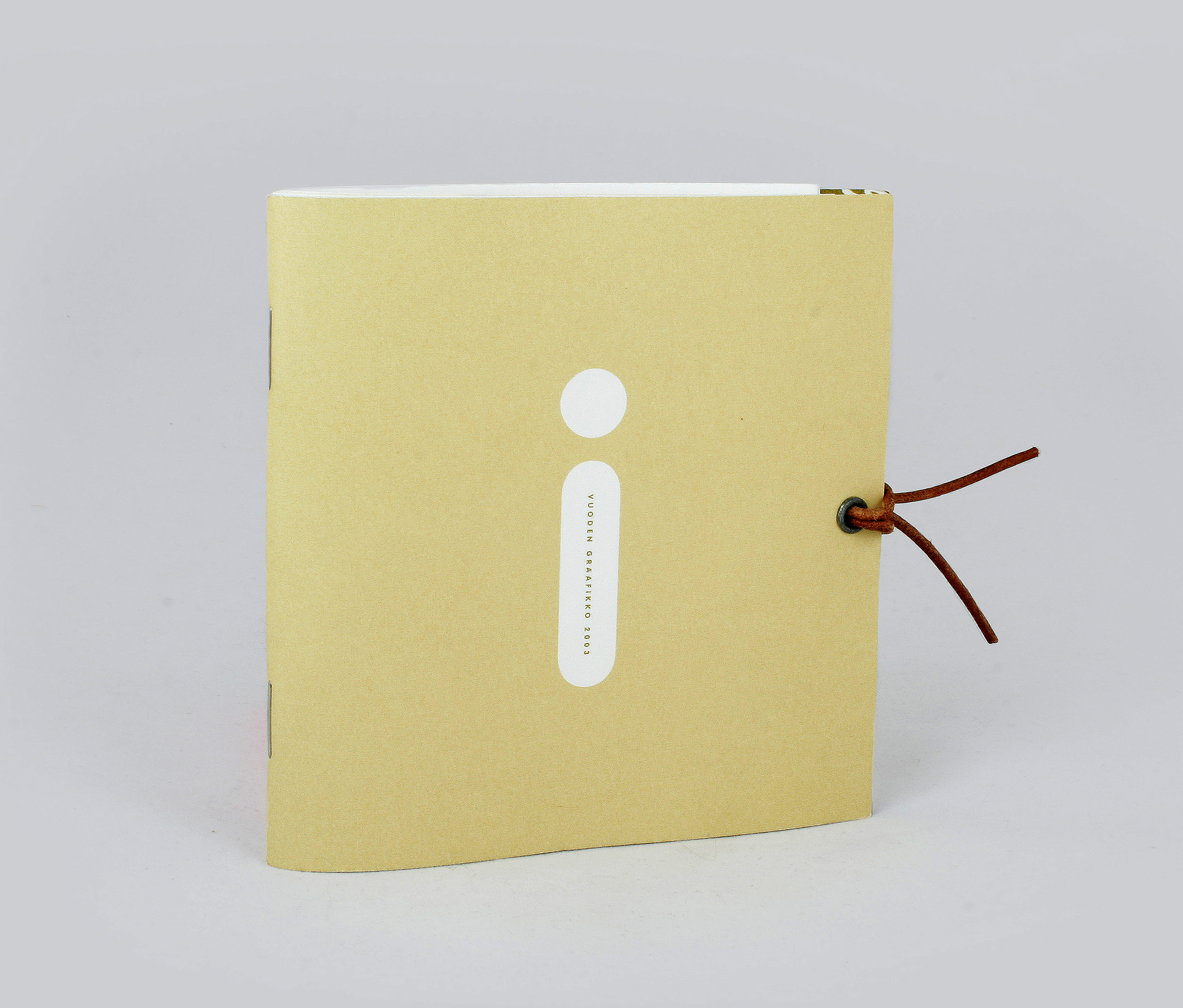 Löysin laatikon pohjalta tällaisen pikkuesitteen jonka suunnittelin ja taitoin kymmenen vuotta sitten. Vuosi oli ammatillisesti merkittävä -Grafia myönsi minulle Vuoden graafikko 2003 -tittelin. Asian kunniaksi järjestettiin näyttely Designmuseossa jonne olin koonnut töitäni vuosien varrelta ja jossa myöskin tämä teos oli jaossa. Se herättää edelleenkin paljon mukavia muistoja.