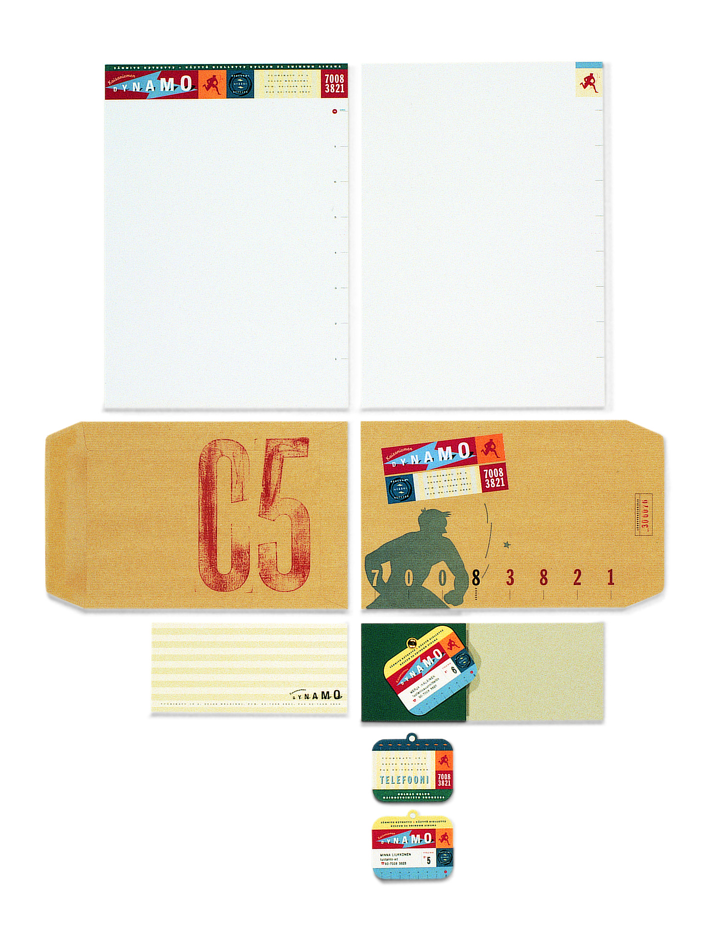 Parikymmentä vuotta sitten iso osa työstäni oli yritysgrafiikan suunnittelua; tunnuksia, logoja, esitteitä ja lomakkeistoja. Tämä työ on nyt vähentynyt ja tilalle on tullut suunnittelutyötä uusiin, varsinkin digitaalisiin kanaviin. Painettuja kirjelomakkeita ei juurikaan enää käytetä, mutta aikoinaan niihin satsattiin tosi paljon. Mainostoimisto Kaisaniemen Dynamon yritysidentiteetti näytti ensimmäisinä vuosina tältä: painatus tehtiin kahdeksalle PMS värillä, käyntikortit stanssattiin ja jokaiselle työntekijälle tehtiin leimat ”Työläinen n:o X”, kortteja varten. Kokonaisuuteen kuului myös saate- ja muistilaput, pakkauspaperille painetut ja numeroidut kirjekuoret, tarrat, t-paidat jne. Lomakkeissa luki mm. ”Kolmas kelpo mainostoimisto” ja käyntikorteissa ”Reklaami-afääri-ateljee” 🙂